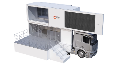 Extra size screen set above exhibition vehicles, enhancing advertising range and efficiency.