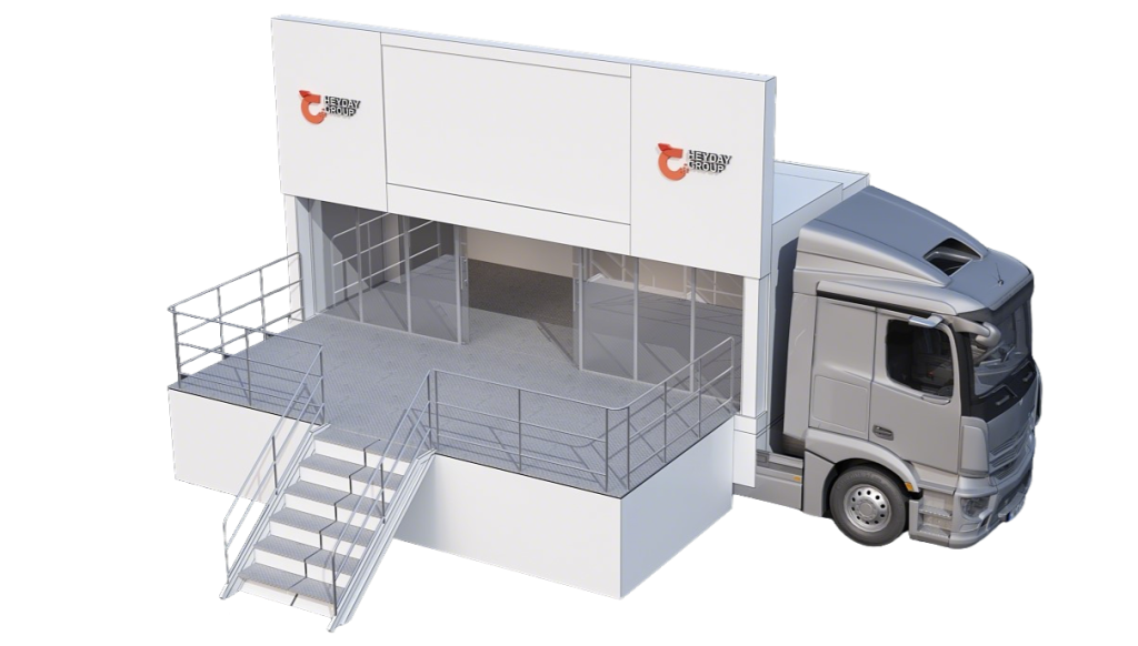 雙層自動化展品,快速建造後形成移動展館。全面宣傳品牌及產品訊息。